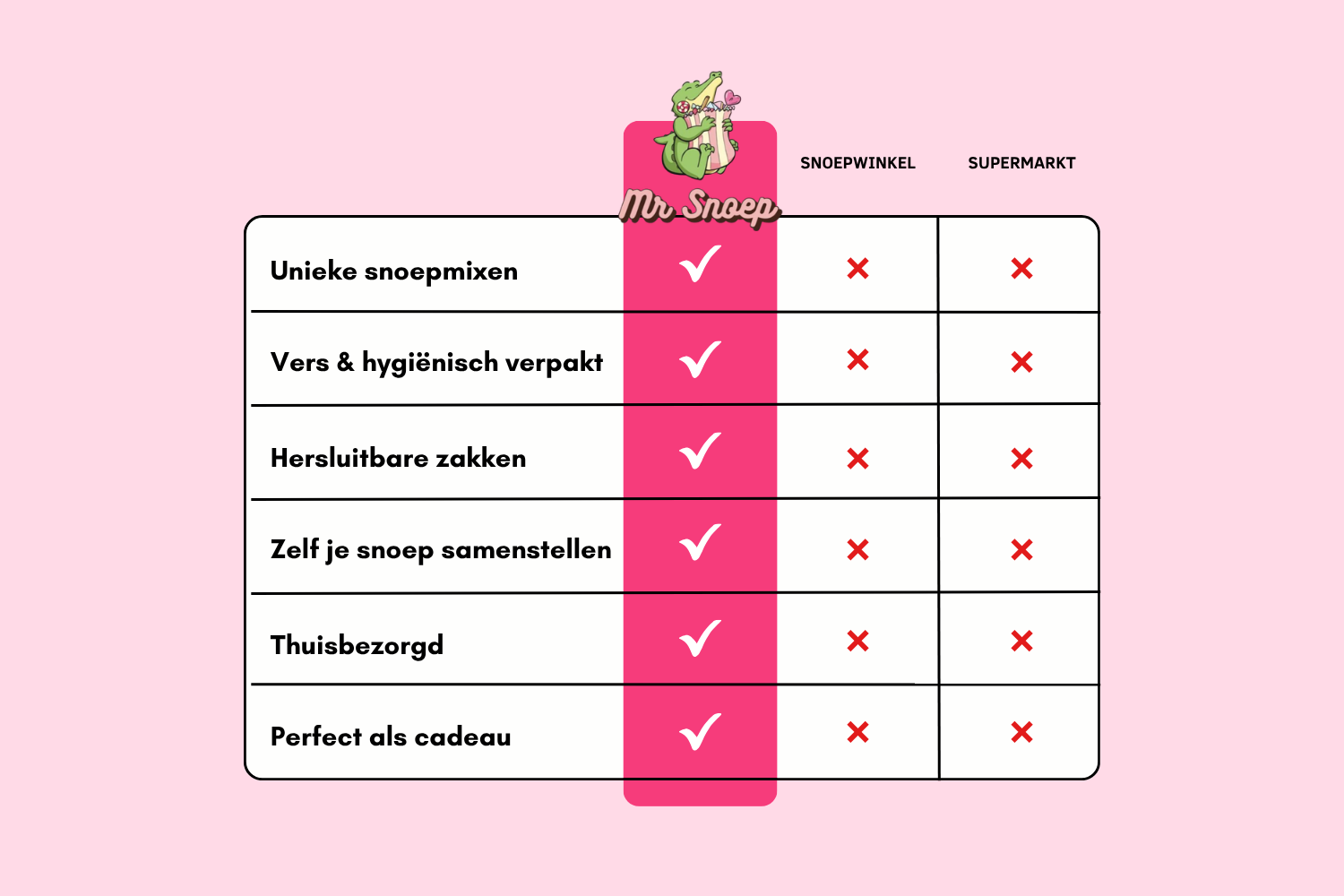 At Mr Snoep, it’s all about quality. Every mix is freshly put together and hygienically packed in resealable bags, so the flavour and texture stay perfect, delivered straight to your door.